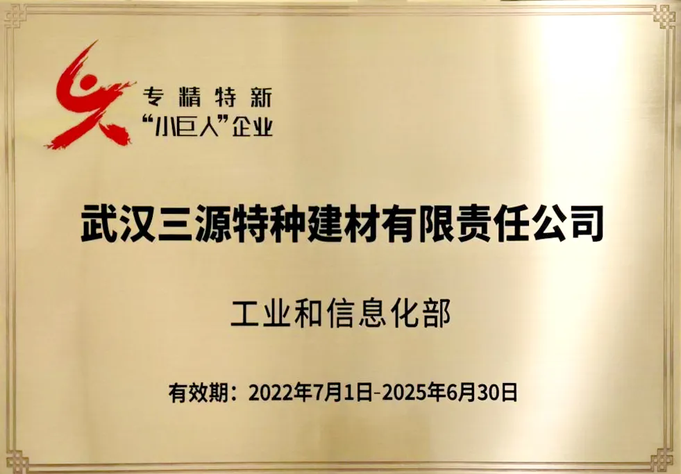 喜訊!經(jīng)省級(jí)中小企業(yè)主管部門推薦、專家審核及社會(huì)公示,國(guó)家工業(yè)和信息化部發(fā)布第四批專精特新“小巨人”企業(yè)獲批名單,武漢三源特種建材有限責(zé)任公司榮譽(yù)入選。